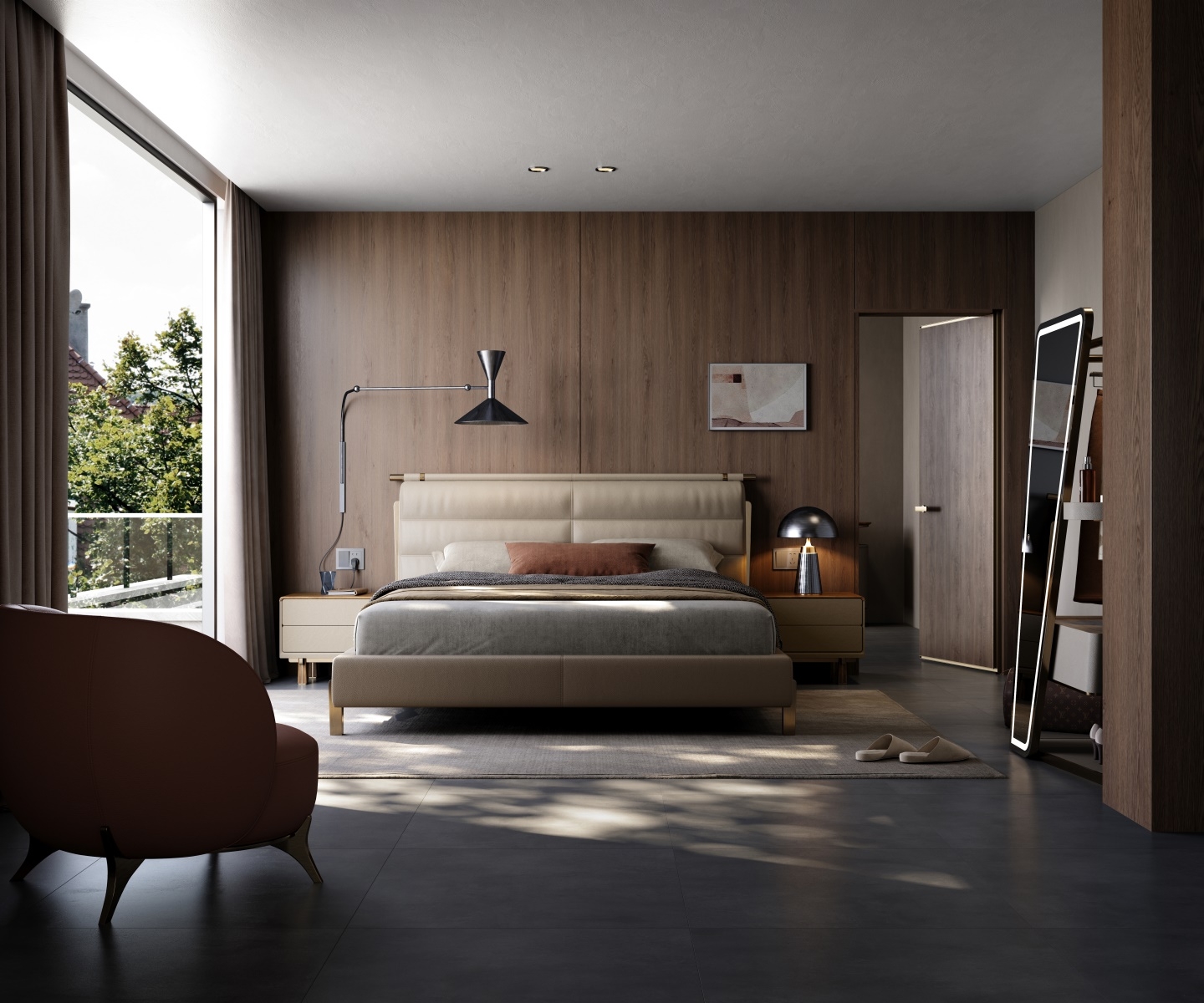 The sailboat elements are integrated into the bed screen design, and the soft soft bag outlines the elegant contour of the sail, creating an ultra-thin headboard together with the champagne gold frame.