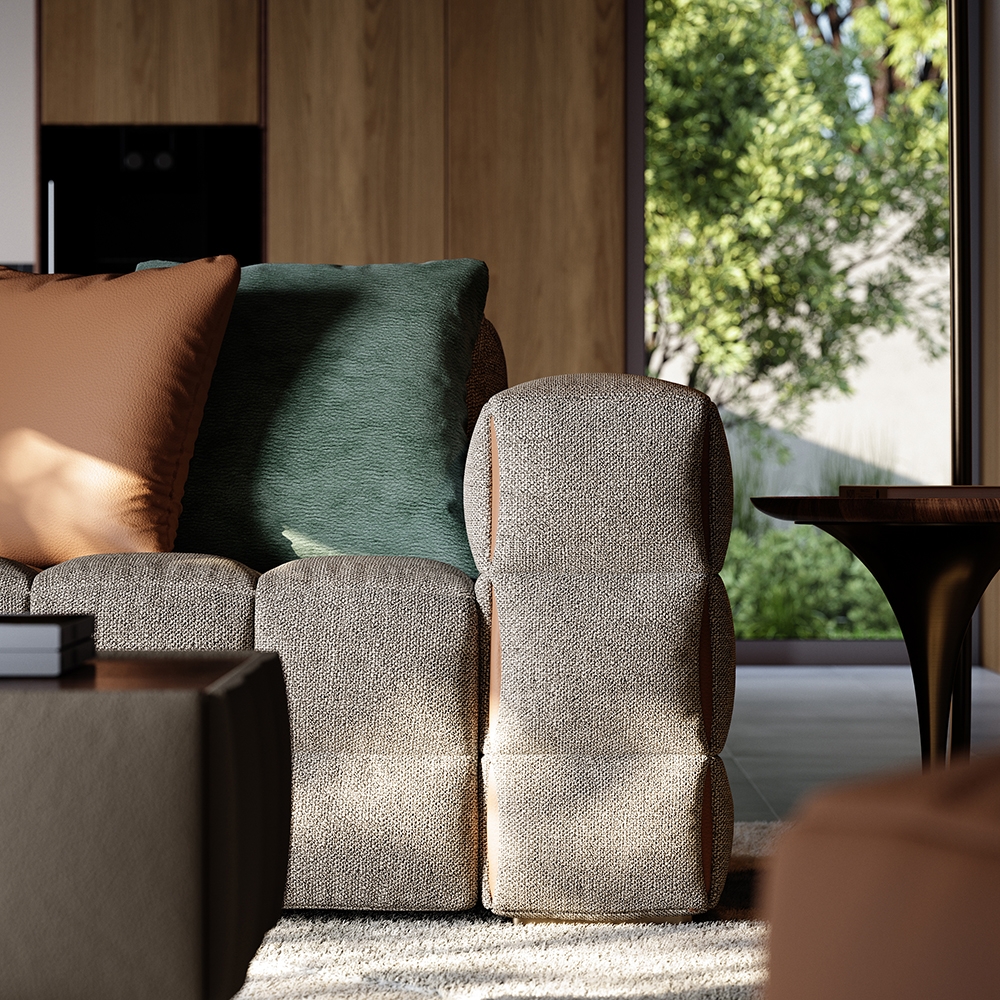 The design elements of the extended product series square grid are applied around the coffee table, and the metal element base is used as decoration, making the simple design also reveal its simplicity.