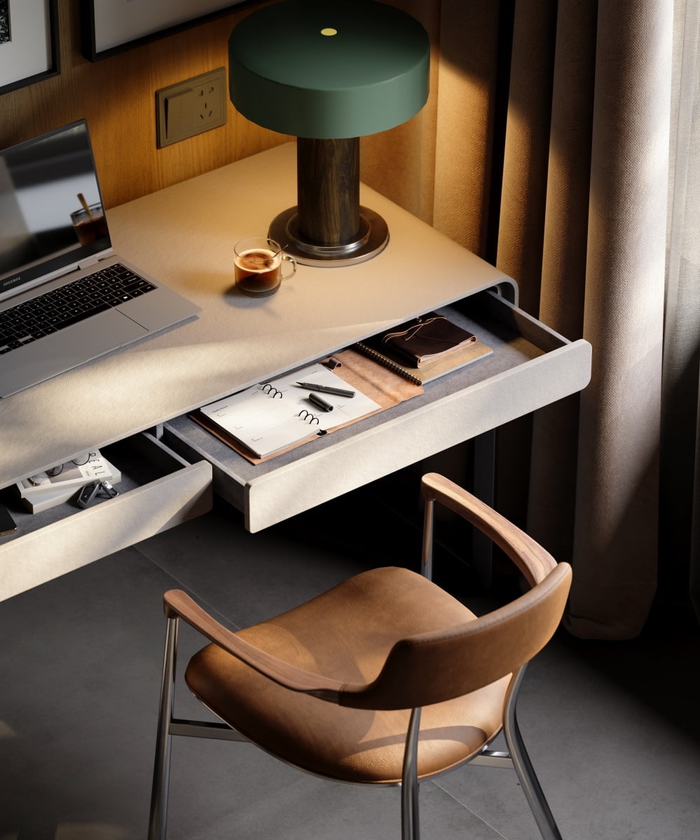 The entire desk has no sharp edges, and the rounded outline and edging design make the use process safer and more comfortable. The large and small drawers are convenient for classifying and storing different items.