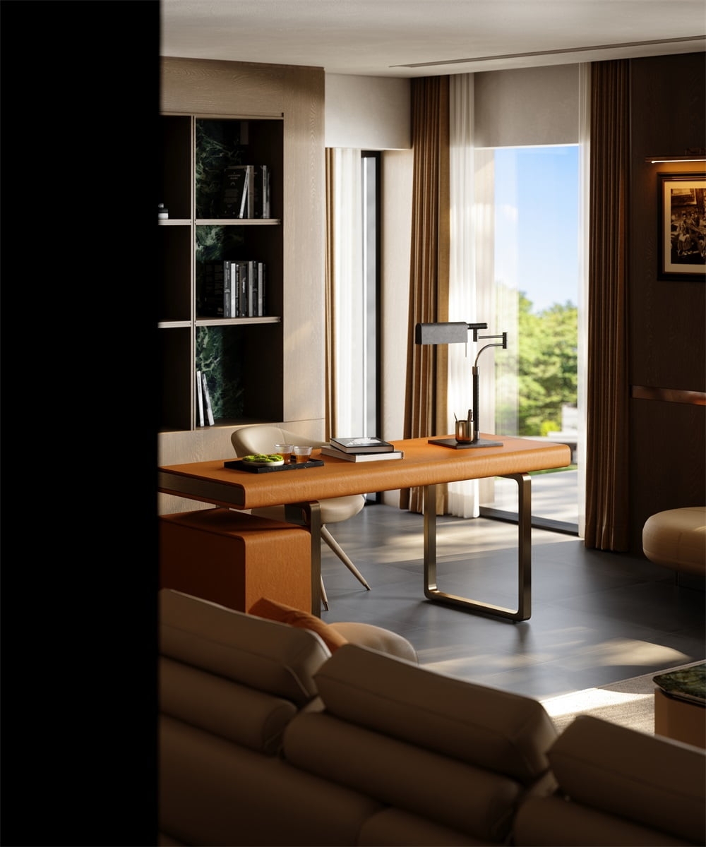Leather - Wrapped Desk with Drawers   Luxury Home Office Desk