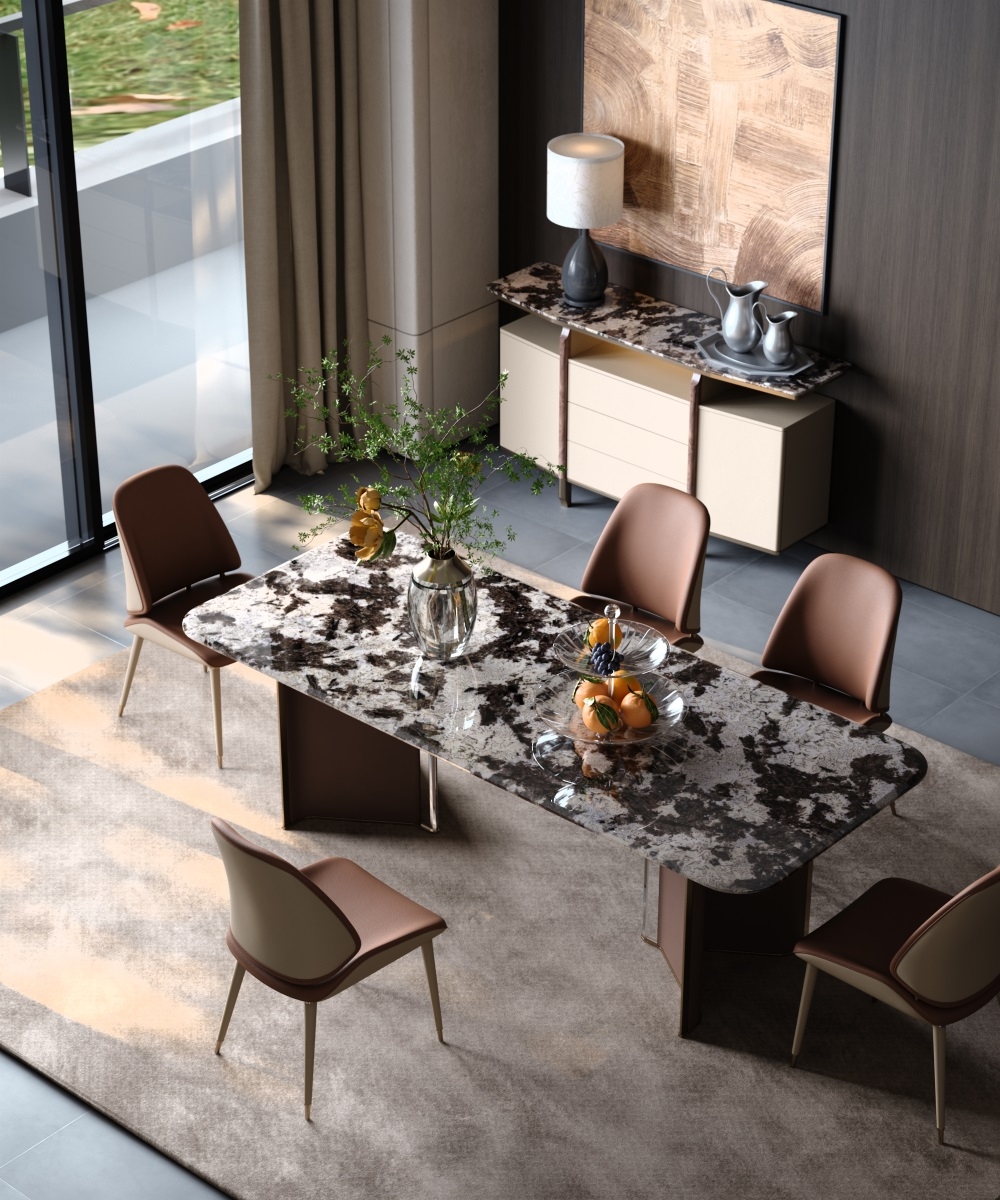 It is the "social interaction center" of the restaurant, suitable for family gatherings, friends' banquets, and multiple dining scenes; it is also the "aesthetic display stand" of the living room, with art ornaments and green plants to create an immersive social atmosphere. It is suitable for modern art, Italian light luxury, new Chinese style and other styles, helping the space to advance from a "dining area" to a "high-end social art venue".