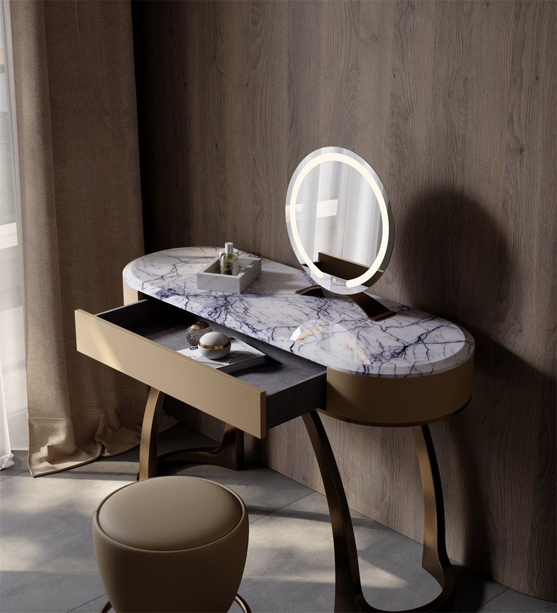 It is the "beauty and order housekeeper" of the bedroom, helping to classify and put away small items for a refined look; it is also a "healing resting table", with aromatherapy and green plants, creating an immersive skin care atmosphere. It is suitable for modern light luxury, Italian simplicity, new Chinese style and other styles, helping the space to advance from a "sleeping area" to a "refined beauty art field".