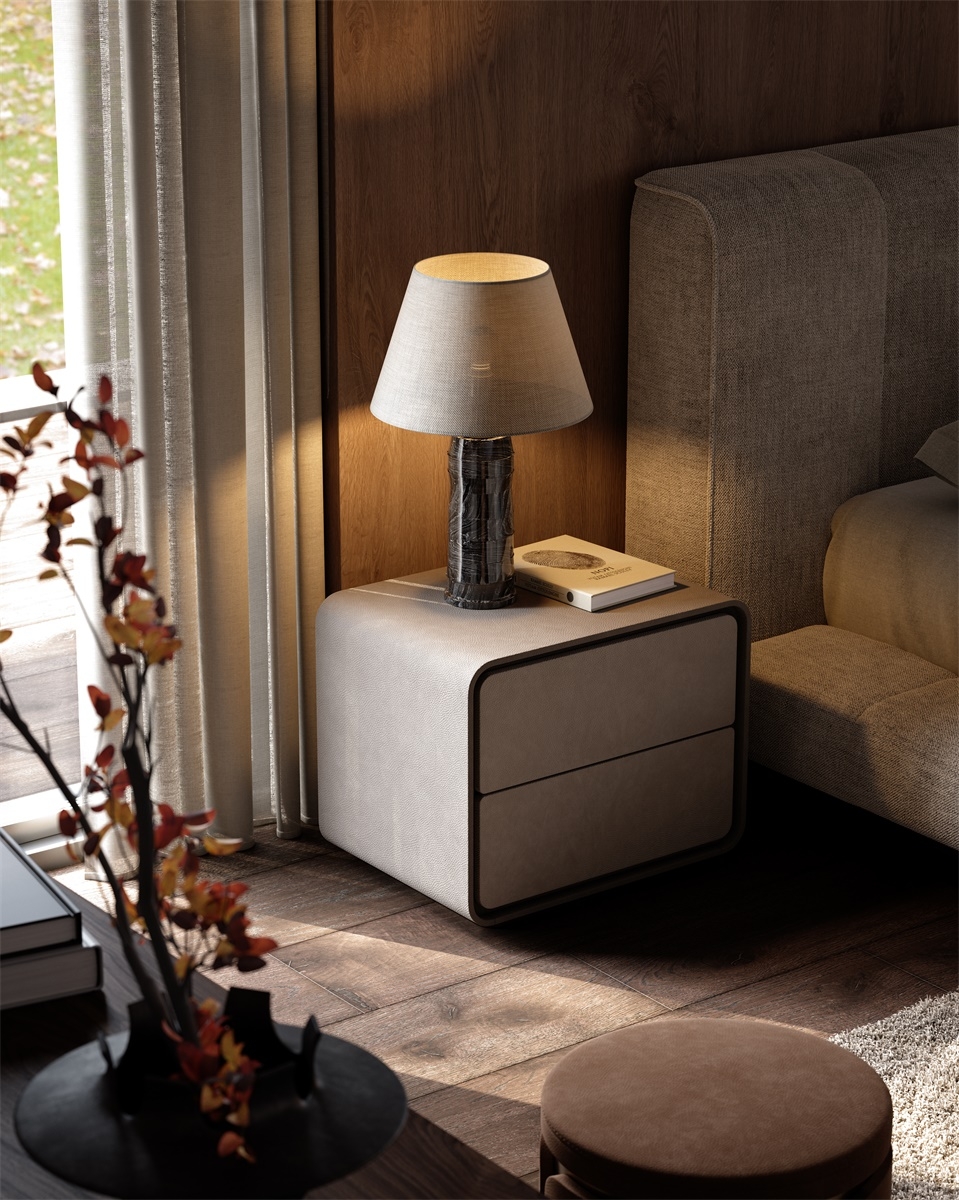 Textured Leather - Like Finish: The nightstand features a soft, pebble - textured surface that mimics high - end leather. It offers a luxurious touch and a sophisticated look, resistant to daily wear while adding an elegant vibe to your space.