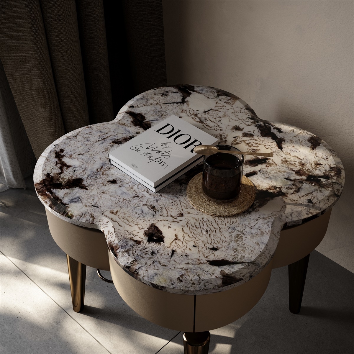 In a space that focuses on creating a home aesthetic atmosphere and practical storage needs, this side table combines rock slabs, leather, and metal materials with a clever double-drawer arc design, becoming an "exquisite supporting role" in the living room and bedroom, allowing every placement of items to become a comfortable enjoyment that blends with quality life.