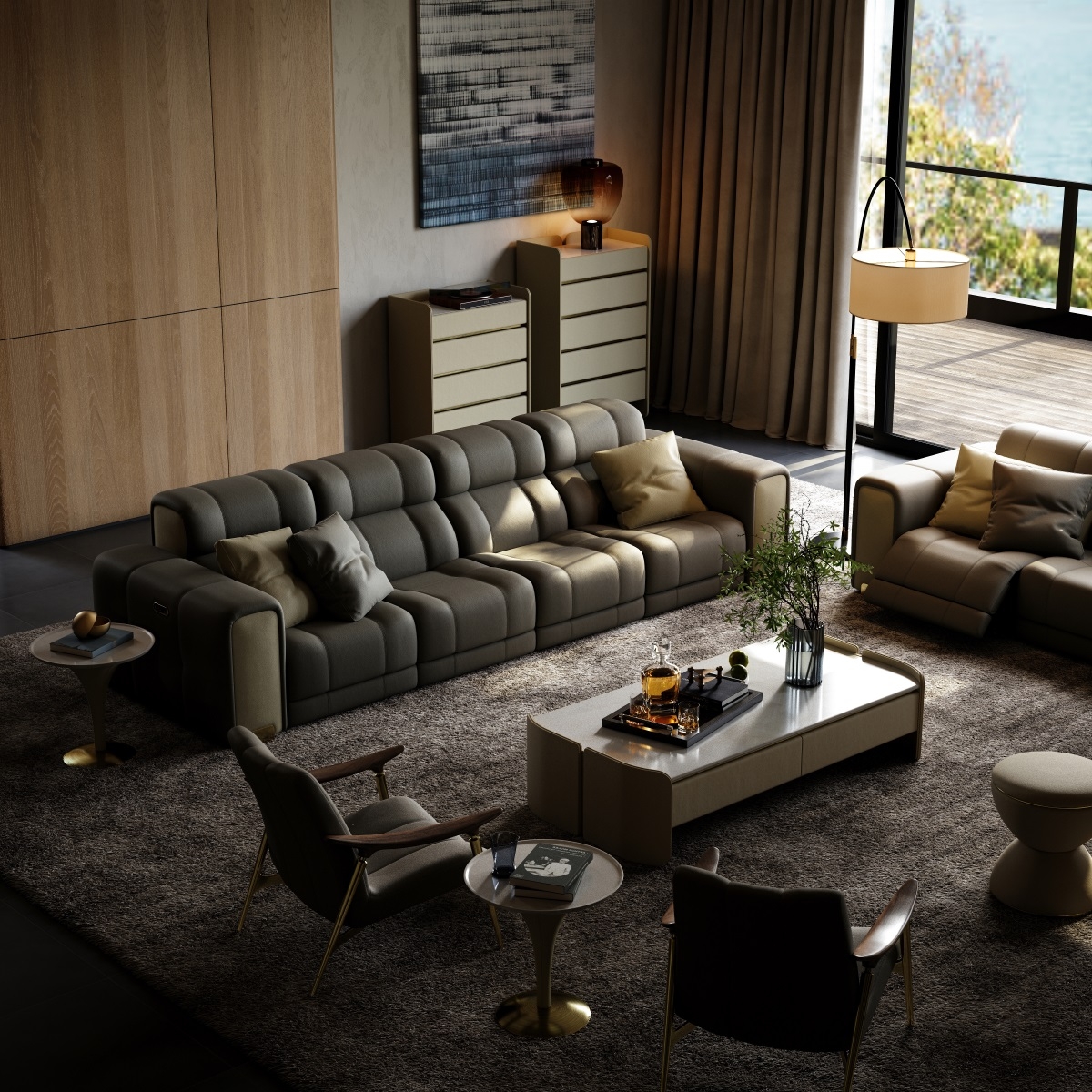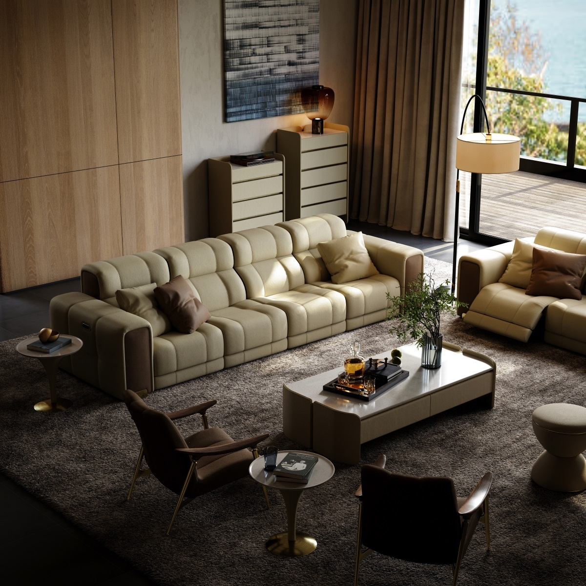 Each sofa set is hand-stitched by a senior craftsman with over 20 years of experience. The diamond-shaped quilting on the leather surface is precisely laid down to 0.1mm, with even and fine stitches. The arc treatment at the corners is smooth and round, and the details fully demonstrate the craftsmanship. The golden thread nanmu frame is joined with traditional mortise and tenon joints, without a single nail or glue, yet it can withstand a thousand pounds of pressure and remain as stable as ever after a hundred years.